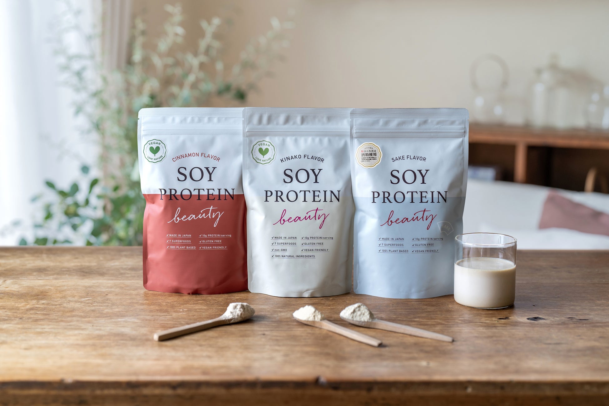 - 美しさと健康をサポートする溶けやすさと美味しさにこだわった100%植物性のヴィーガンプロテイン。発酵食品「酒粕」と、大豆プロテインにそら豆プロテインを加え、和漢植物と7種のスーパーフードを配合。体内の巡りと若々しさをサポートします。